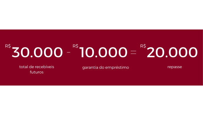 Exemplo: Se você vendeu R$ 30.000 no mês, os R$ 10.000 da garantia (gravame) serão descontados do repasse.
